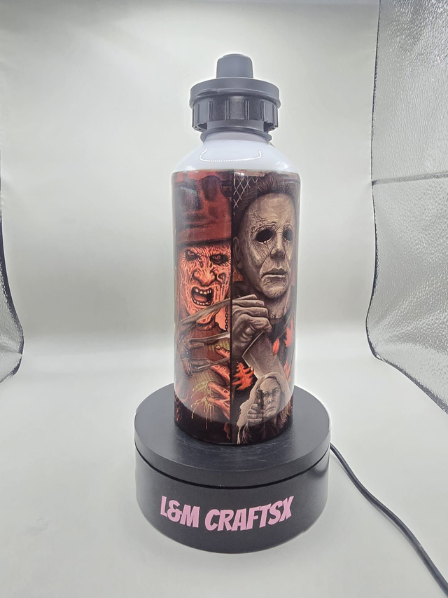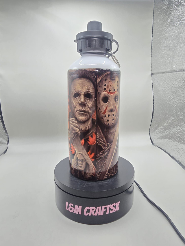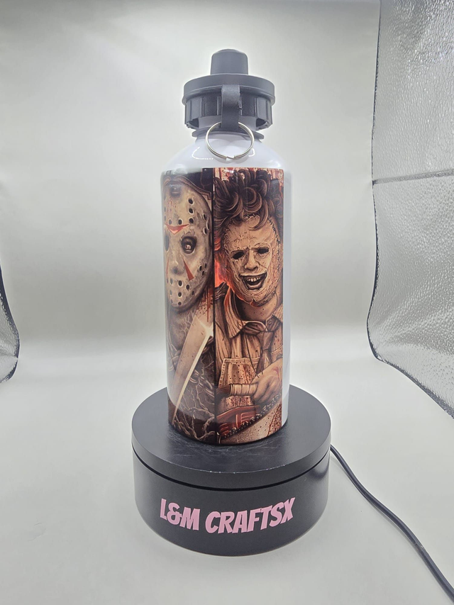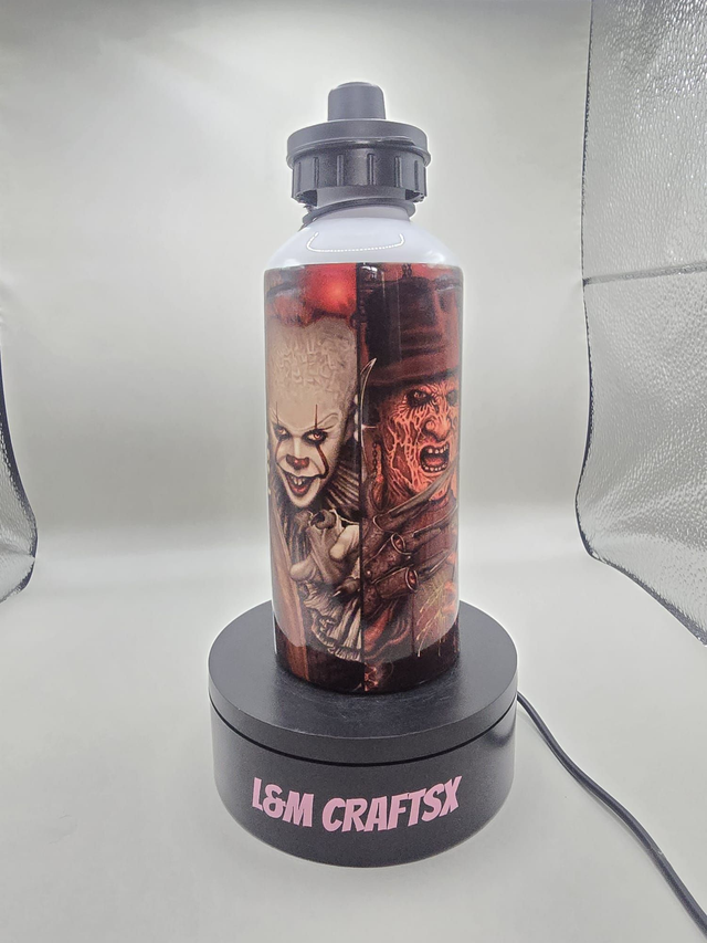 Satisfy your inner horror fan with our 650ml horror themed water bottle. This metal bottle comes with both a convenient sports lid and screw lid, making it perfect for on-the-go hydration. Whether you're a Fright Night fan or just looking for a spooky accessory, this bottle is sure to make a statement. Stay hydrated while showing off your love for all things creepy and eerie. Perfect for taking to the gym, on hikes, or just for everyday use. Stay hydrated in style with this unique and practical water bottle.